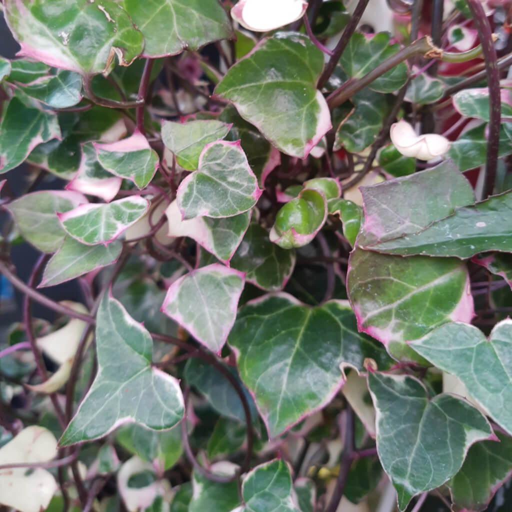 An attractive evergreen climbing / vining plant. Its ivy-like leaves are green and white showing pink tones as it matures.