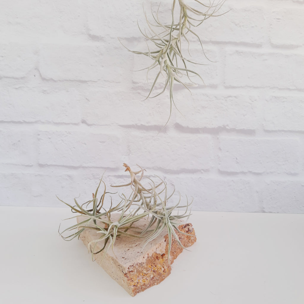 A long trailing air plant, with silvery-green leaves and purple flowers. Rarely needs watering if in a humid environment.